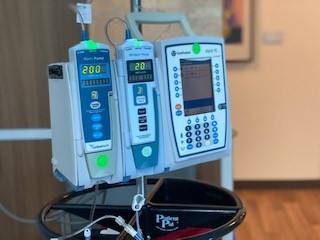 Jane receives an infusion as part of her breast cancer therapy at the OHSU Knight Cancer Institute. Photo Courtesy: Jane Gray |