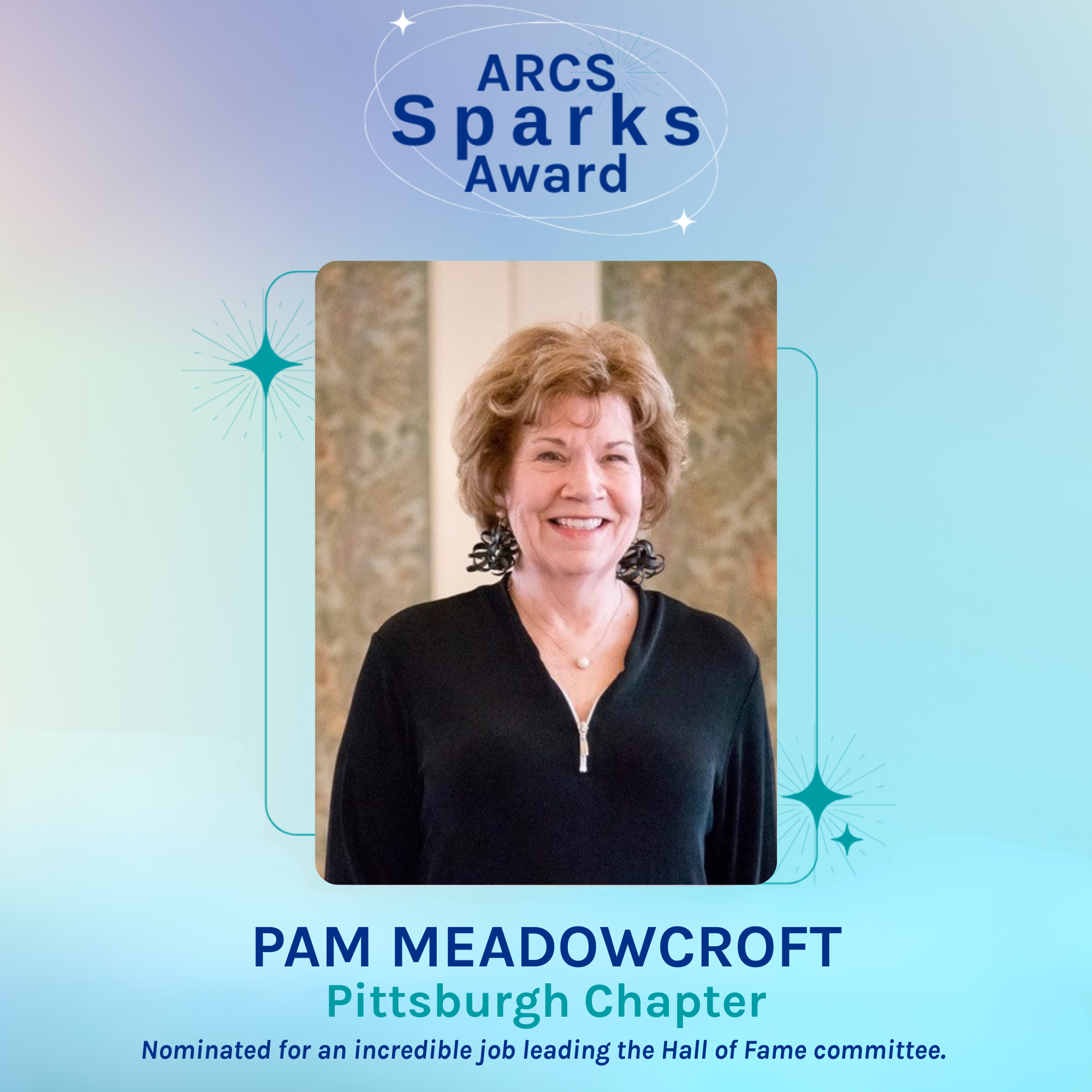 The ARCS Sparks Award is meant to honor ARCS members who exhibit small, everyday acts of kindness or displays of leadership or commitment to ARCS Foundation within the chapter or at the national level.