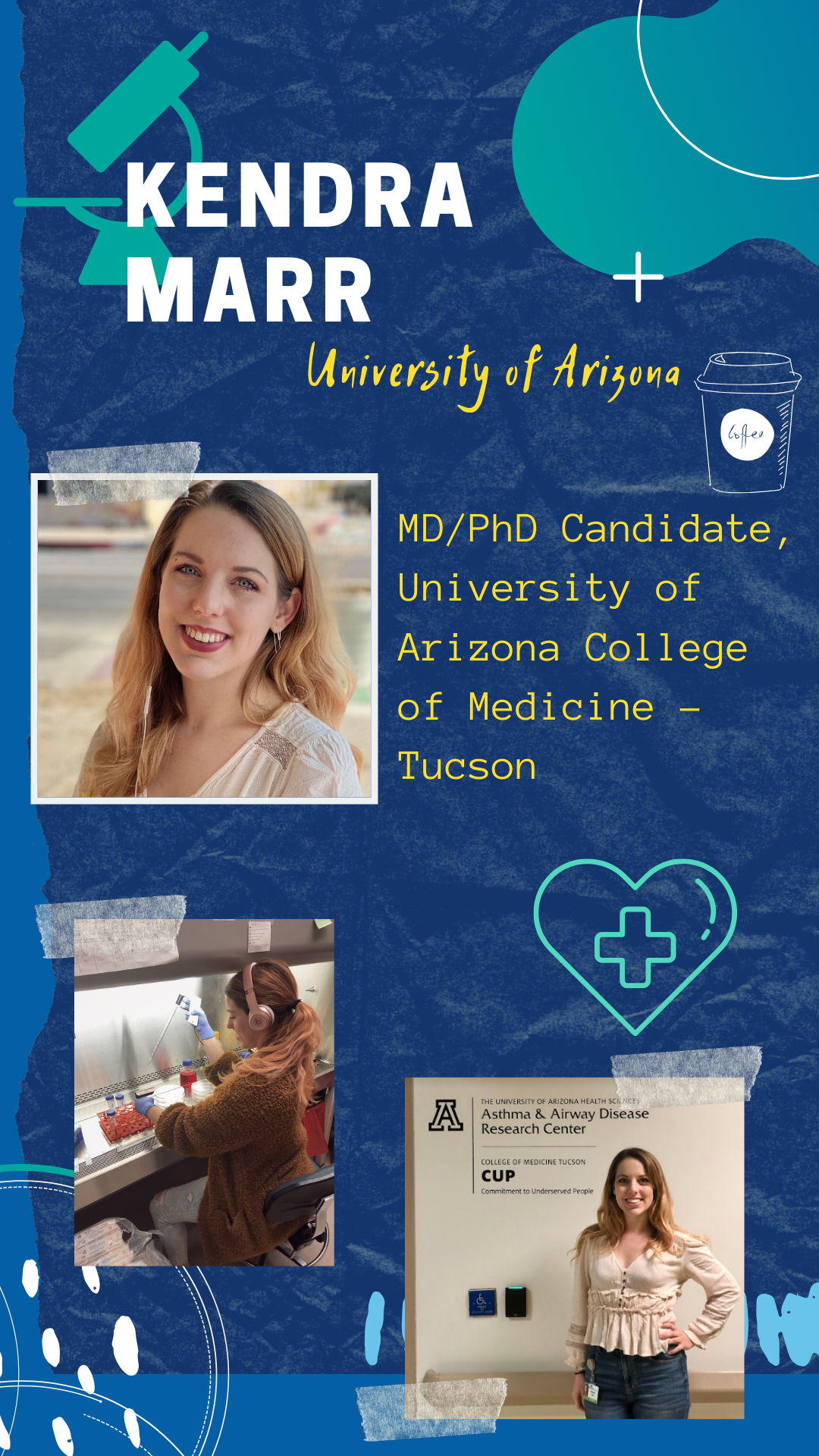 Kendra shared other places in her life as well, including a coffee shop, the University of Arizona Asthma & Airway Disease Research Center, and the classroom in which she presents her research to faculty and other students in her program. As she remarks in the post, “Scientists need to be able to communicate their work to an audience.”