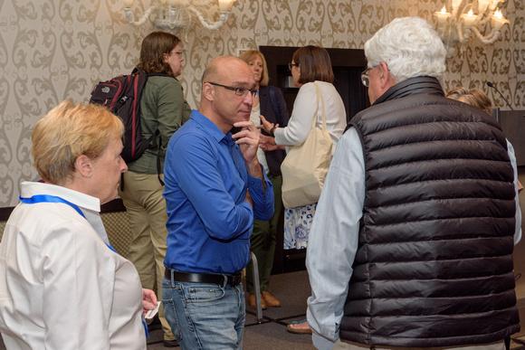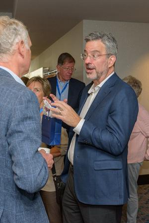 Dr. Patrick Phillips talking with attendees after his presentation
